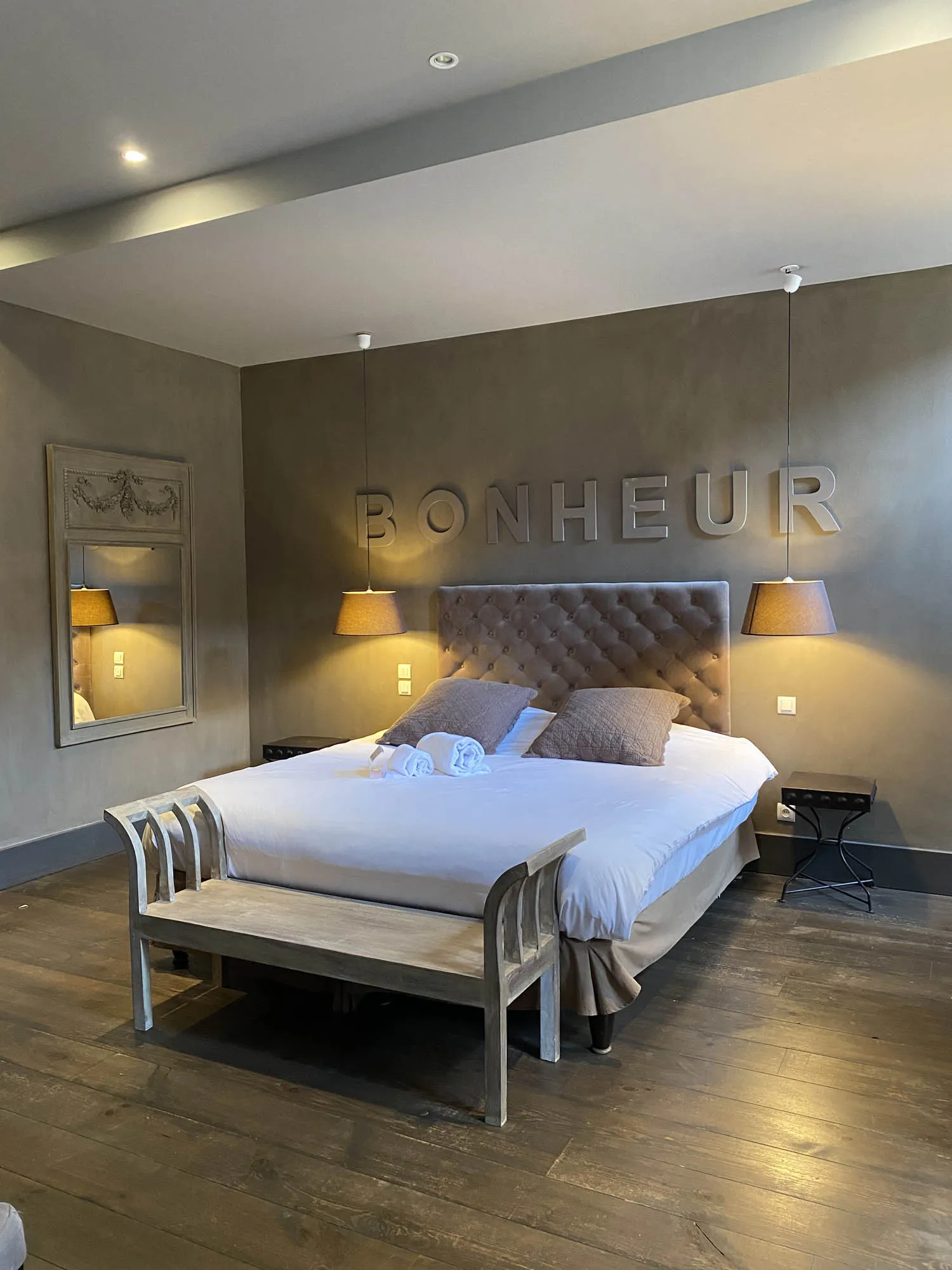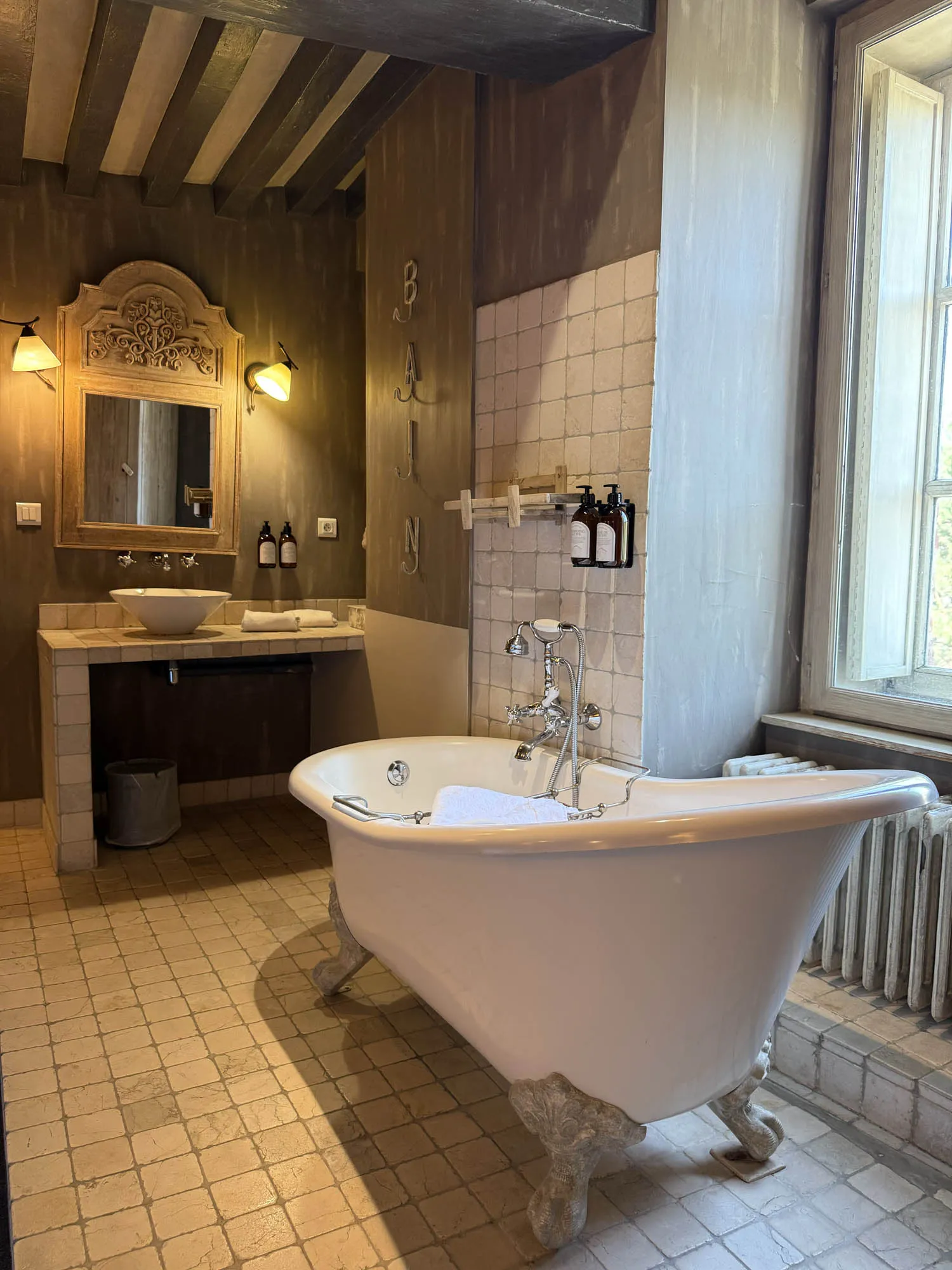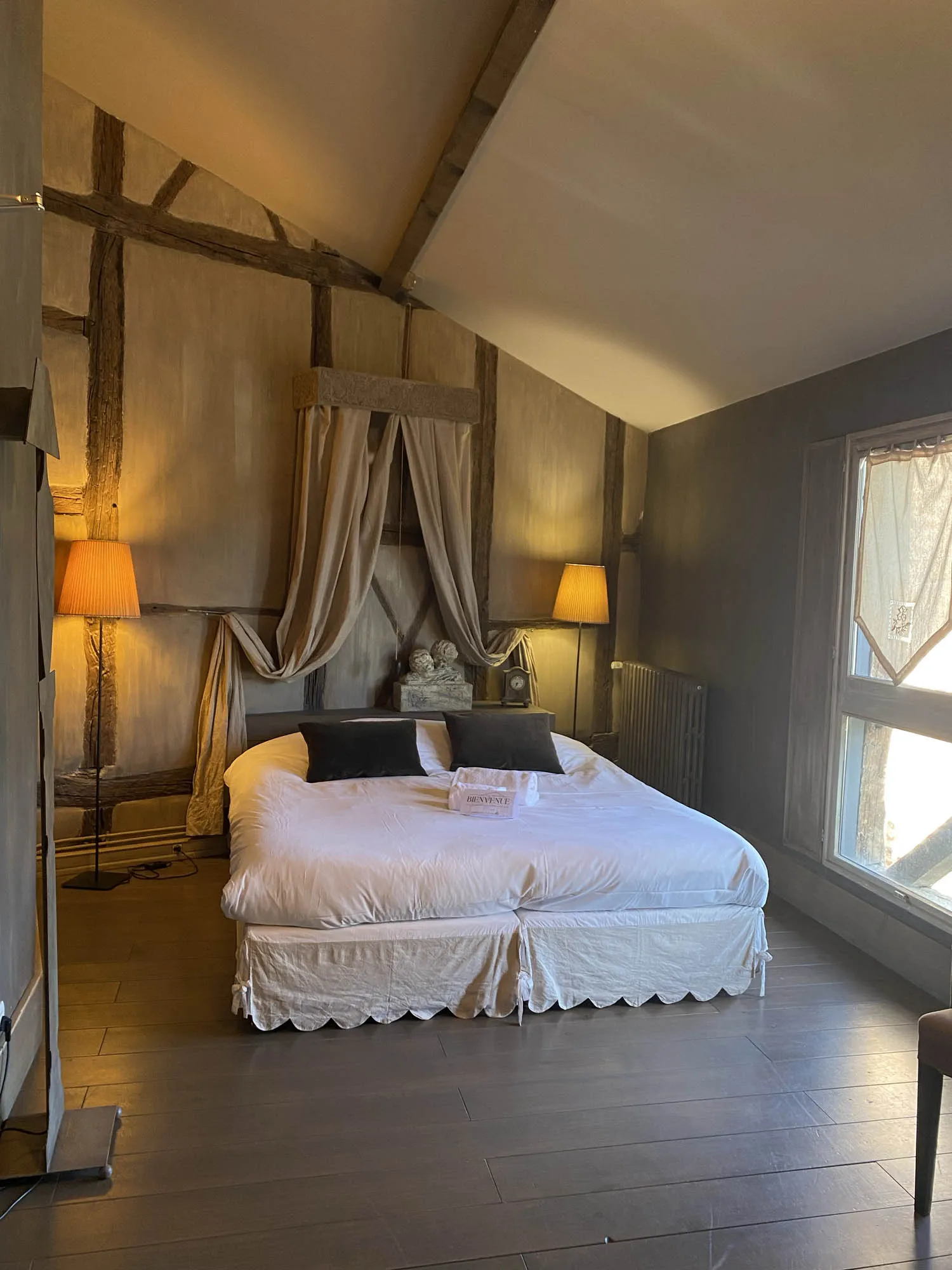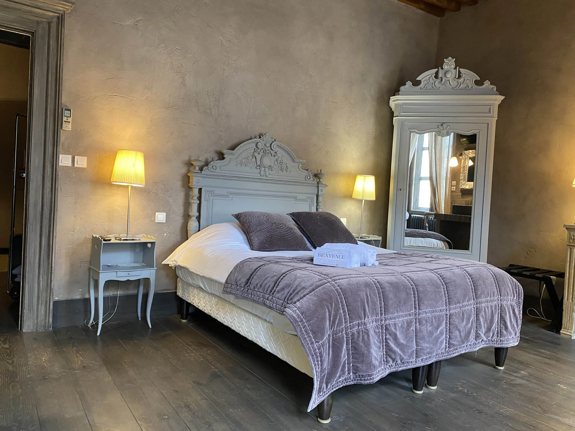 Spacieuse et élégante, la chambre Deluxe mêle raffinement et confort. Sa décoration soigneusement travaillée crée une atmosphère propice à la détente. Certaines chambres se distinguent par des éléments uniques, comme une salle de bain nichée dans la tour médiévale ou une vue privilégiée sur les toits de la cité historique.